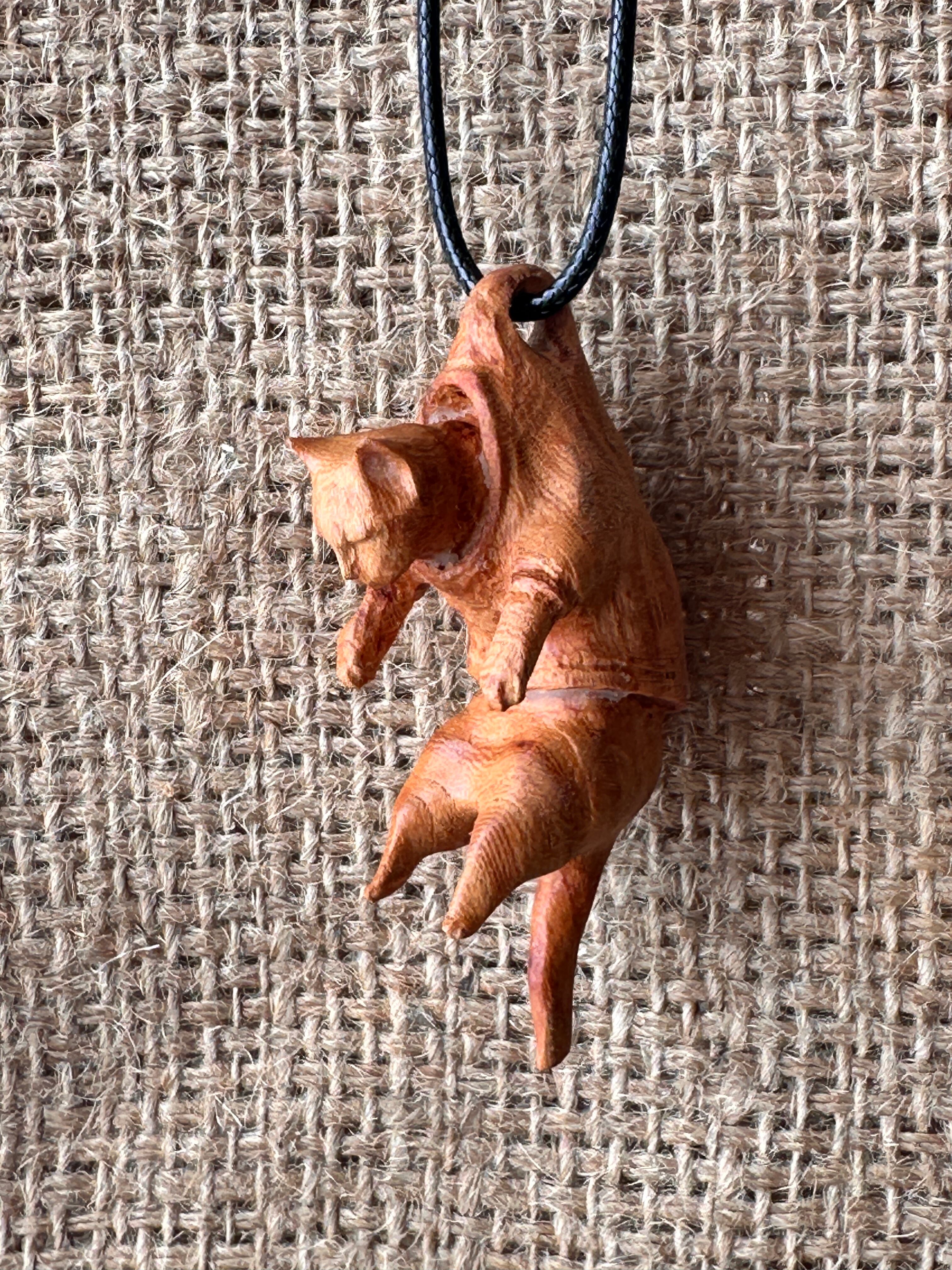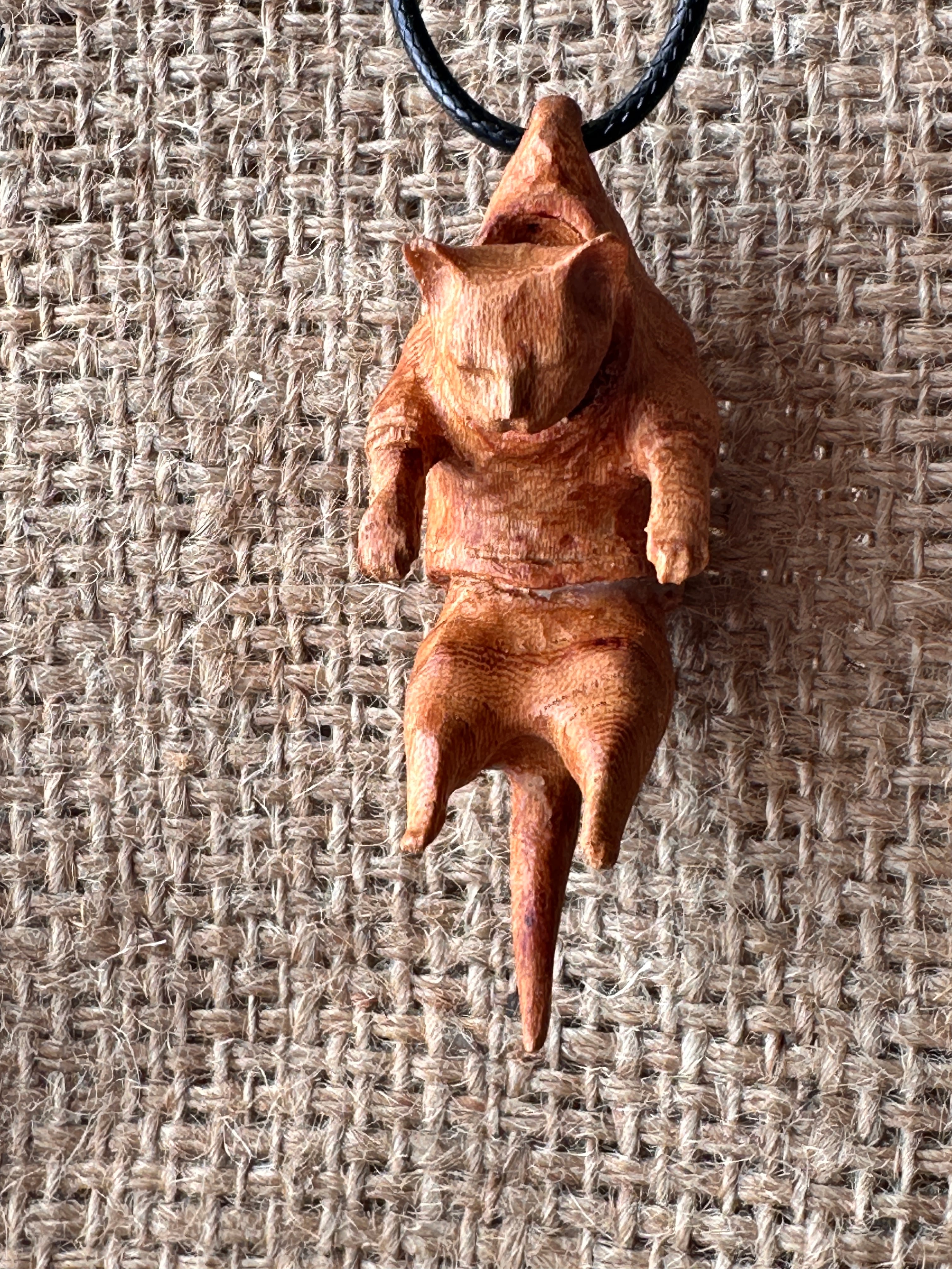 木彫りの猫は、独創的なデザインと欅の風合いが特徴で、和風の魅力を存分に楽しめる逸品です。素敵なアクセサリーとしてお求めいただけます。